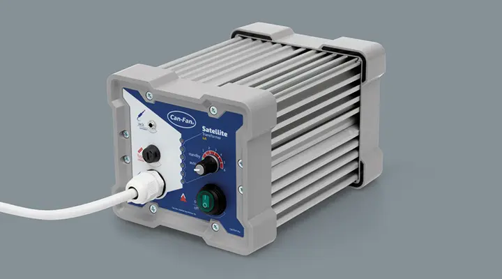 The Can-Fan Satellite is a perfect example of being forward thinking and innovative. Consumers want as much control over their fans and (air)filters as possible; controlling the full 0 – 100% spectrum, without limitations. Custom made. That makes the satellite the next step forward; the first transformer which connects an EC controller with an AC-Fan.