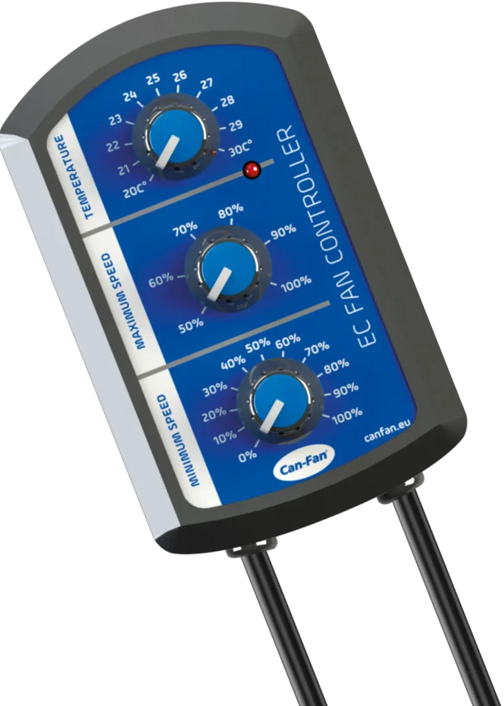 Con el controlador Can-Fan Temperatura y velocidad, puede controlar el Q-Max EC o Max-Fan Pro Series EC. Este controlador para los motores EC también es compatible con nuestros extractores con motores AC de una velocidad utilizando el Satélite 4A. Ideal para todos los entornos de trabajo.